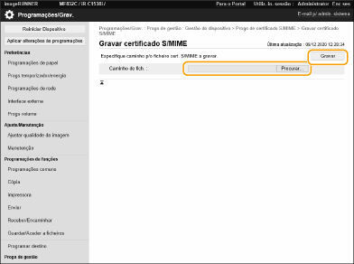 Clique em [Procurar...], especifique o ficheiro (certificado S/MIME) que pretende gravar e clique em [Gravar].