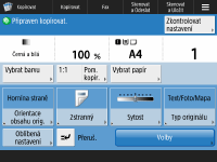 Stiskněte zobrazené na obrazovce <Hlavní obrazovka> a na obrazovce základních funkcí, chcete-li upravit obrazovku podle svých potřeb, např. změnit rozmístění tlačítek nebo vytvořit klávesovou zkratku. Přizpůsobení displeje dotekového panelu podle vlastních potřeb![]() Změnit můžete nastavení týkající se zobrazení obrazovky, např. která obrazovka se zobrazí bezprostředně po zapnutí stroje, a zda se má zobrazovat obrazovka pro zbývající papír a toner. <Nastavení displeje> Můžete nastavit, aby se obrazovka zobrazila po uplynutí určitého časového úseku, během něhož nebyla provedena operace. <Funkce po autom. resetování> |