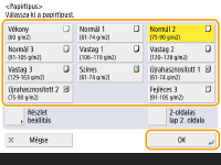 <OK>. A gyakran használt papírméret és papírtípus bejegyzése a többfunkciós tálcához