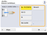 2 | Válassza ki a borítékok típusát. ![]() Nyomja meg az <OK> gombot, és folytassa az 5. lépéssel. |
