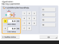 | Nyomja meg az <X> vagy az <Y> lehetőséget, majd adja meg az egyes oldalak hosszát a számbillentyűk segítségével. |