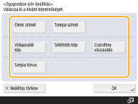 Több képminőség-típust egyszerre is kiválaszthat. Azonban az <Élénk színek> és a <Tompa színek>, valamint a <Világosabb kép>, <Sötétebb kép> és <Csúcsfény visszaadás> egyszerre nem választható ki.