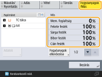 A Távvezérlés segítségével is ellenőrizheti a fennmaradó fogyóeszköz-mennyiségeket. A készülék állapotának ellenőrzése |