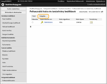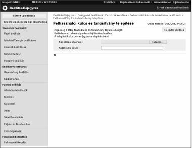 [Felhasználói kulcs és tanúsítvány beállítások] gombra.