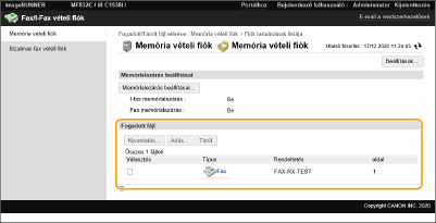 ![]() | A Távvezérlés segítségével kinyomtathatja, elküldheti vagy törölheti a Fax/I-Fax vételi fiókban ideiglenesen tárolt faxokat és I-faxokat. |
