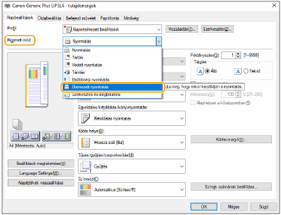 ![]() | Beállíthat egy időpontot a nyomtatás megkezdéséhez, ami például nagy mennyiségű dokumentum éjszakai nyomtatásához hasznos. |