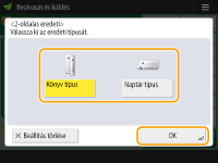 Válassza ki a <Könyv típus> vagy <Naptár típus> lehetőséget, majd nyomja meg az <OK> gombot.