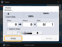 Jeżeli naciśniesz przycisk (Stop) na panelu sterowania, gdy zadania kopiowania mają status oczekujących, wszystkie te zadania kopiowania zostaną wstrzymane i wyświetlony zostanie komunikat <<Stop>Wybierz zadanie kopiowania, które chcesz anulować.> wraz z listą zadań kopiowania. Możesz wybrać zadanie kopiowania z listy i anulować to zadanie naciskając na <Anuluj>. Aby wznowić kopiowanie, naciśnij na <Wznów Kopiow.>. |