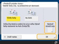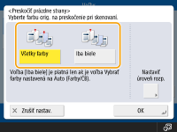 Ak chcete preskakovať prázdne originály bez ohľadu na ich farbu, zvoľte možnosť <Všetky farby>. Ak chcete preskakovať iba prázdne originály v bielej farbe, zvoľte <Iba biele>.