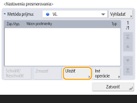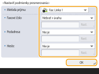 Možnosť <Receive Method> nemôžete zmeniť po registrácii položky <Nastavenia presmerovania>. Ak chcete použiť nastavenia presmerovania so zmenenou položkou <Receive Method>, musíte znova zaregistrovať nastavenia presmerovania. |