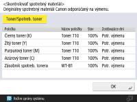 Zostávajúce množstvo spotrebných materiálov môžete skontrolovať z rozhrania Remote UI (Vzdialené UR). Kontrola stavu zariadenia |