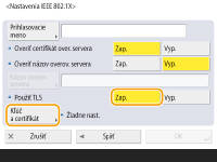 Stlačte tlačidlo <Zap.> pri položke <Použiť IEEE 802.1X>
