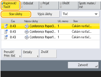 Stlačením tlačidla <Detaily> po vybratí dokumentu môžete zrušiť tlač, skontrolovať stav úlohy atď.