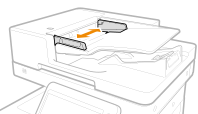 Skenējot plānus oriģinālus (52 g/m² vai mazāk) vai A6R un mazāka izmēra oriģinālus, paceliet oriģinālu turētāju.