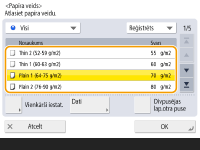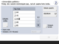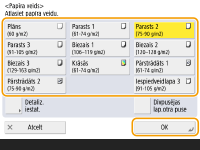 <OK>. Bieži izmantotā papīra formāta un veida reģistrēšana daudzfunkciju papīrturī