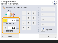 Nospiediet <X> vai <Y>, lai ievadītu katras malas garumu, izmantojot ciparu taustiņus. ![]() Ja reģistrējat bieži izmantotu papīra formātu uz pogām <S1>–<S4>, varat to izsaukt, vienkārši nospiežot taustiņu. Brīva formāta papīra reģistrēšana (pielāgota formāta papīrs) | |