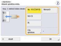 2 | Izvēlieties aplokšņu veidu. ![]() Nospiediet <OK> un pārejiet pie 5. darbības. |