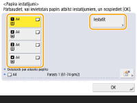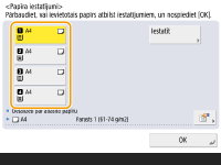 Ja parādītais papīra formāts/veids atšķiras no ievietotā papīra formāta/veida, atlasiet papīra avotu atbilstoši ievietotajam papīram un nospiediet <Iestatīt> .