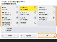 Ja ievietotā papīra veids netiek parādīts, nospiediet <Detaliz. iestat.>, lai to izvēlētos no saraksta.