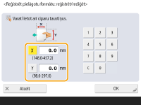 Norādiet malas <X> un <Y> garumu. Nospiediet <X> vai <Y>, lai ievadītu katras malas garumu, izmantojot ciparu taustiņus.