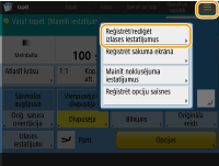 Ekrāns <Sākums>Izmantojot <Fakss> un <Skenēt un sūtīt>, noklusējuma ekrānu var mainīt uz ekrānu <Izlases iestatījumi>.