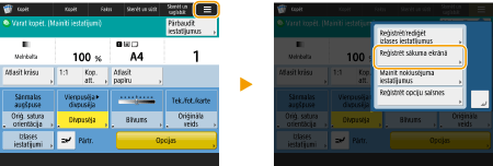 , lai norādītu kopēšanas iestatījumus. Ekrāns <Sākums>