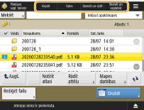 Funkciju īsinājumpogas var tikt parādītas katrā funkcijas ekrānā. Bieži izmantotu funkciju reģistrēšana ir ērta, jo tādējādi funkcijas var nepārtraukti izmantot, neatgriežoties ekrānā <Sākums>.