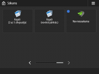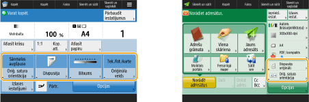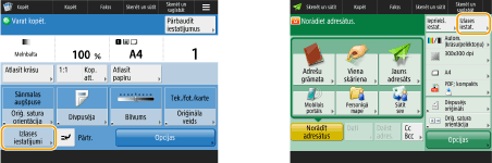 Varat mainīt iestatījumu pogas, kas tiek parādītas pamatfunkciju ekrānos (kopēšanai, faksa ziņojumu sūtīšanai un skenēšanai). Varat arī noteikt, ka katram pieteiktajam lietotājam tiek parādīts pielāgots pamatfunkciju ekrāns.