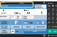 Tiek parādīts iestatījumu statuss, tostarp kopēšanas koeficients, papīra formāts un kopiju skaits. Pārbaudiet iestatījumus, lai kopēšana tiktu veikta pienācīgi. Lai mainītu iestatījumus, nospiediet pogu, kas atrodas zem parādīšanas sadaļas.