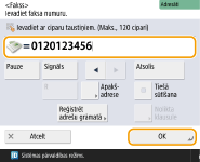 Faksa dokumentu sūtīšana uz ārzemēmIevadiet starptautisko piekļuves kodu, valsts kodu un faksa numuru šādā secībā. Ja neizdodas izveidot savienojumu ar adresātu ārzemēs, nospiediet <Pauze>, lai ievietotu pauzi starp numuriem. Faksa dokumentu sūtīšana apakšadresātamIekārta atbalsta ITU-T* standarta apakšadresātu izmantošanu. Ja saņēmēja faksa aparāts ir saderīgs ar ITU-T apakšadresātu funkciju, var palielināt sūtīto dokumentu konfidencialitāti, izmantojot apakšadresātu un paroli. Lai sūtītu dokumentu ar apakšadresātu, ievadiet faksa numuru, nospiediet Apakšadrese> vai <Iestatīt detalizēti> un tad ievadiet apakšadresātu un paroli. *ITU-T nozīmē International Telecommunication Union-Telecommunication Standardization Sector, un ir grupa, kas izvirza rekomendācijas pasaules telekomunikācijas standartizācijai. |