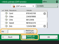 <Reģistr.jaunu adresātu>, <Dati/rediģ.>, un <Dzēst> sadaļā <Reģistrēt/rediģēt> ekrānā <Adrešu grāmata (lokālā)> var izmantot, lai reģistrētu jaunu adresātu, pārbaudītu detalizēto informāciju un labotu/dzēstu adresātus. Lai izmantotu attālo adrešu grāmatu, ir jākonfigurē serveriekārtas iestatījumi. Serveriekārtā iestatiet attālās adrešu grāmatas ārēju atvēršanu. |