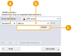 , tad nospiediet <Dati>. Lai izdzēstu adresātu no norādītajiem adresātiem, nospiediet <Dzēst adres.>.Serveriekārtai veicot sistēmas administratora informācijas iestatījumus | Klienta iekārtai veicot sistēmas administratora informācijas iestatījumus | Serveriekārtas un klienta iekārtas sistēmas administratora ID un sistēmas PIN sakrīt | Var izmantot attālo adrešu grāmatu/viena skāriena pogas |