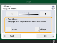 ![]() | Ir iespējams pielāgot fona blīvumu. Var salasāmi nosūtīt oriģinālus ar krāsainu fonu vai no plāna papīra, piemēra, avīzes, kur teksts un attēli spīd cauri lapai. Fona blīvuma pielāgošana |