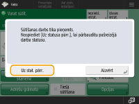 Kopējā norādīto adresātu skaita pārbaudīšanaNorādīto adresātu kopējais skaits ir attēlots ekrāna augšdaļā. Tādējādi varat pārliecināties, ka adresātu skaits ir pareizs, pirms sūtīšanas. ![]() Sūtīšana ar sūtītāja informācijuDokumentus var sūtīt, norādot sūtītāja vārdu un faksa numuru. <SŪT termināļa ID> Nosūtīto dokumentu statusu pārbaudeEkrānā <Stat.pārraudz.> var pārbaudīt nosūtīto dokumentu statusu. No šī ekrāna pēc statusa pārbaudes ir iespējams faksa dokumentu sūtīt atkāroti vai atcelt sūtīšanu. Nosūtīto un saņemto dokumentu statusa un žurnāla skatīšana Ja <Rādīt paziņojumu, kad darbs tiek akceptēts> ir iestatīts kā <On>, ekrāns Stat.pārraudz.> ir apskatāms no nākamā ekrāna, kas tiek parādīts pēc sūtīta dokumenta saņemšanas. <Rādīt paziņojumu, kad darbs tiek akceptēts> ![]() Ja notiek pārraides kļūda tādēļ, ka saņēmēja līnija ir aizņemta:iekārta pēc noteikta laika automātiski atkārto izsaukumu. Var norādīt, cik reižu iekārtai ir jāveic atkārtota izsaukšana, kā arī intervālus starp atkārtotas izsaukšanas reizēm. <Autom. atkārtot> Sūtīšanas rezultātu atskaites drukāšanaFaksa pamatfunkciju ekrānā nospiežot <Opcijas> <SŪT rezultātu atskaite>, var iestatīt automātisku sūtīšanas rezultātu atskaites drukāšanu.Lai to iestatītu katram sūtījumam no sadaļas <Opcijas>, ir jāaizvēlas <Tikai kļūdas gadījumā> vai <Izsl.> sadaļā <SŪT rezultātu atskaite>, tad jāiestata iespēja <Atļaut druk. no ekrāna Opcijas> kā <Iesl.>. Ja fotoattēli nosūtītajā attēlā ir pārāk tumši vai gaišās krāsas krāsu oriģinālu fonā nevar noņemtNosūtītā attēla kvalitāti var uzlabot, ja tiek ievēroti tālāk minētie nosacījumi/iestatījumi. Darba veids: Fakss (Atmiņas sūtīšana) vai Skenēt un sūtīt (Fakss/I-fakss) <Atlasīt krāsu>: <Melnbalta> (Skenēt un sūtīt) <Oriģināla veids>: <Teksts> <Blīvums> <Fona blīvums>: <Autom.><Izšķirtspēja>: 200 x 400 dpi, 300 x 300 dpi*, 400 x 400 dpi vai 600 x 600 dpi* *Var iestatīt funkcijai Skenēt un sūtīt <Ātruma/attēla kvalit. priorit. melnbaltai skenēšanai> Faksa/i-faksa sūtīšanas darbi: <Kvalitātes prioritāte> (<Ātruma/attēla kvalit. priorit. melnbaltai skenēšanai>) |