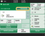 Nosūtīta dokumenta kopijas saglabāšanaIekārtu var iestatīt, lai tā automātiski saglabātu nosūtītu dokumentu kopijas failu serverī. Kopija tiek pārveidota par elektronisku failu, piemēram, PDF formātā, un saglabāta, lai tās saturu varētu ērti apskatīt datorā. Nosūtīta dokumenta kopijas saglabāšana Nosūtītāja nosaukuma izvēlēšanāsFaksa pamatfunkciju ekrānā nospiežot <Opcijas> <Sūtītāja nosaukums (TTI)>, var izvēlēties nosaukumu no reģistrēto sūtītāja nosaukumu saraksta, lai pievienotu sūtītāja informāciju. <Reģistrēt sūtītāja nosaukumu (TTI)>Ja pieteikšanās tiek veikta, izmantojot Lietotāja autentifikāciju, pieteikumvārds parādās nosūtītāja vārda (TTI) pozīcijā <100>. Skenēto attēlu pārbaude pirms sūtīšanasSkenētos attēlus pirms sūtīšanas var pārbaudīt priekšskatījuma ekrānā. Skenēto attēlu pārbaude pirms sūtīšanas (priekšskatījums) Bieži izmantotu iestatījumu reģistrēšanaBieži izmantotus adresātus un skenēšanas iestatījumus var apvienot vienā pogā ērtākai izmantošanai turpmāk. Nospiežot reģistrēto pogu oriģinālu skenēšanas laikā, var ātri pabeigt iestatījumu ievadīšanu. Bieži izmantoto funkciju kombinācijas reģistrēšana |