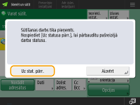 Nosūtot i-faksu saņēmējam, kas neatbalsta šādu sūtīšanas režīmu, ekrānā <Stat.pārraudz.> ir redzams paziņojums <Gaida rezultātu...>, pat ja sūtīšana ir pabeigta. Šis paziņojums tiek rādīts, līdz beidzas <Pilnā režīma SŪT taimauts> iestatītais laiks.