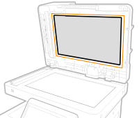 Noslaukiet padevēja un kopēšanas stikla aizmuguri.