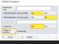 <Pārbaudīt autent. servera sertifik.>Iestatiet šo iestatījumu pozīcijā <Iesl.>, pārbaudot no autentifikācijas servera atsūtītos servera sertifikātus.