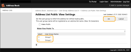 3 | Izvēlieties grupu, kurā koplietot adrešu sarakstu un noklikšķiniet [OK]. ![]() |