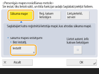 Personīgā mape ir kopīga šādos ekrānos. <Skenēt un sūtīt> <Tīkls> sadaļā <Skenēt un saglabāt> <Tīkls> sadaļā <Piekļuve saglabātajiem failiem> |