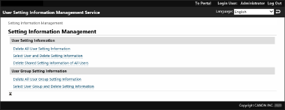 [Yes].1 | Noklikšķiniet uz [Select User and Delete Setting Information]. |