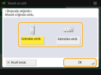 Atlasiet <Grāmatas veids> vai <Kalendāra veids> un nospiediet <OK>.