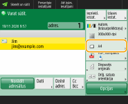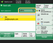 Skenēšanas pamatfunkciju ekrānsAdresātu norādīšana no adrešu grāmatas