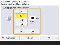 <Dzēst kontūras>.1 | Nospiediet <Dzēst oriģināla kontūras> un pārbaudiet opciju <Oriģ. formāts>. ![]() Ja opcijā <Oriģ. formāts> redzamais formāts atšķiras no oriģināla formāta, nospiediet <Mainīt>, lai atlasītu vajadzīgo. Var skenēt tikai tādu formātu oriģinālus, kuri ir redzami skārienpaneļa displejā. |