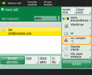 Skenēšanas pamatfunkciju ekrānā norādiet adresātu.