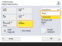 1 | Atlasiet <OOXML> nolaižamajā sarakstā atlasiet <Word>.![]() ![]() Lai mainītu valodu, kas tiek izmantota OCR izpildei, nospiediet <Iestatīt detalizēti> <Mainīt> atlasiet valodu vai valodu grupu nospiediet <OK>. |