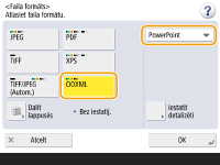 1 | Atlasiet <OOXML> nolaižamajā sarakstā atlasiet <PowerPoint>.![]() ![]() Lai mainītu OCR izmantoto valodu, nospiediet <Iestatīt detalizēti> <Mainīt> atlasiet valodu nospiediet <OK>. |