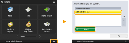 1 | Nospiediet  , atlasiet noņemamo atmiņas ierīci un nospiediet <Noņemt>. |