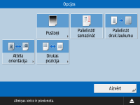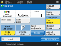 Tiek parādītas pogas drukas iestatījumu maiņai un pašreizējie iestatījumi.