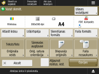 Tālāk minētie ekrāni tiek parādīti, kad tiek skenēti oriģināli, izmantojot izvēlni <Skenēt un saglabāt>, un drukāti faili, izmantojot izvēlni <Piekļuve sagl. failiem>.
